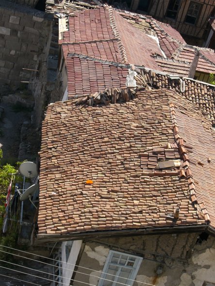 Zwei vom SOA geplante Aktionen möchte ich hier hervorheben und spaeter nochmal alleine wiederholen. Die eine war der Besuch des "museum of anatolian civilizations" die andere der obligatorische Besuch der Zitadelle. Von der Zitadelle aus hat man einen tollen Blick über grosse Teile Ankaras. In der gleichen Gegend gibt es Viertel die aus aus Haeusern bestehen die "gece kondas" genannt werden - über Nacht gebaute, ehemals illegale Siedlungen armer Leute. Eine Gesetz verbietet es dem Staat naemlich Leute ihrer Behausung zu rauben sobald diese vier (?) Waende und ein Dach besitzt. So bauten viele Landfluechtige in den Grossstaedten der Türkei über Nacht ihr Haeuschen auf Land im Staatsbesitz. Spaeter wurden viele Behausungen legalisiert und sind nun je nach Expansion der Stadt zum Teil im Zentrum der Stadt gelegen und viel Geld wert (sagte eine Professorin).